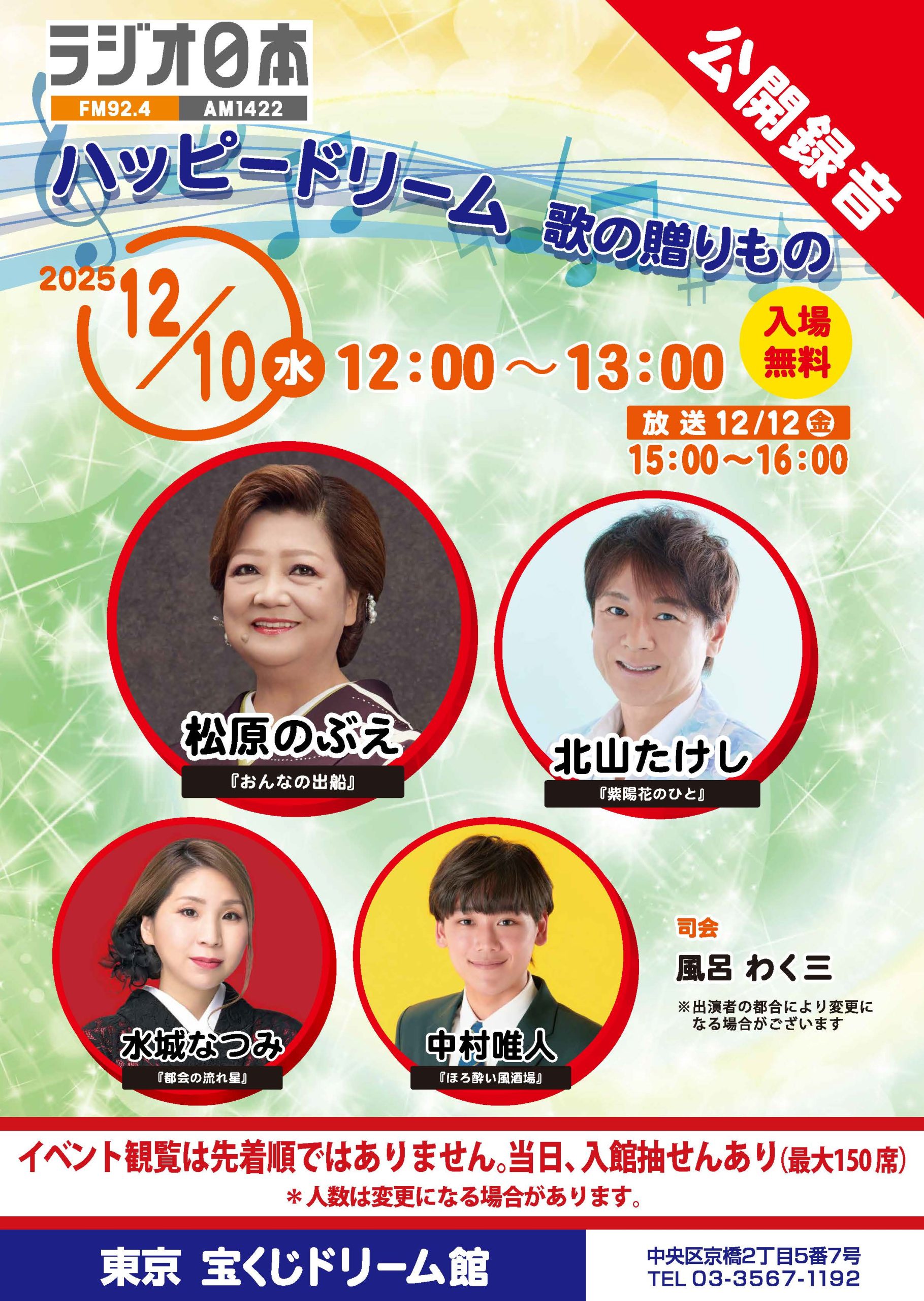 「ハッピードリーム歌の贈りもの」の公開収録を行います。
